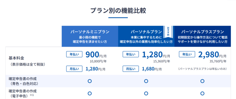 など、確定申告のための最低限の機能だけ使えればOKな人はパーソナルミニがピッタリです。